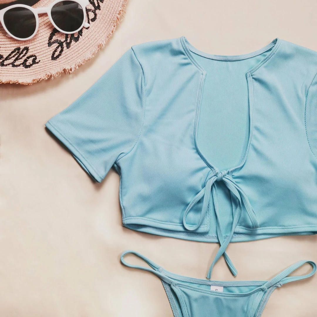 Alexis bikini includes the top & bottoms. Mid rise fit. Adustable tie straps on the top, and bottom!