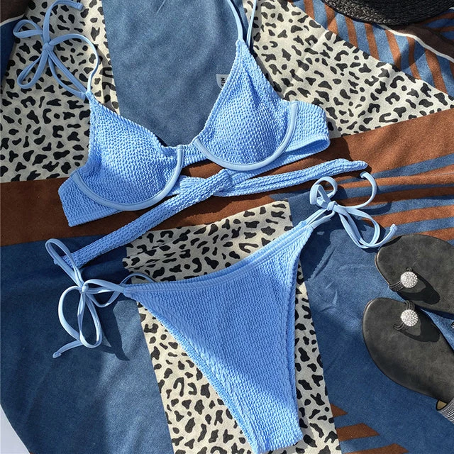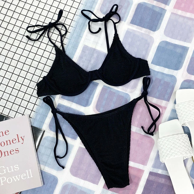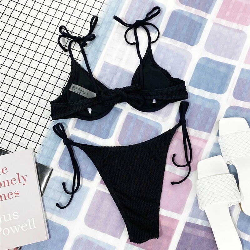 bikini includes the top & bottoms. Mid rise fit. Cheeky