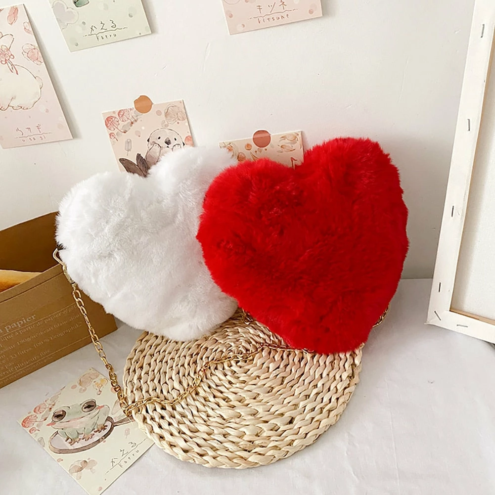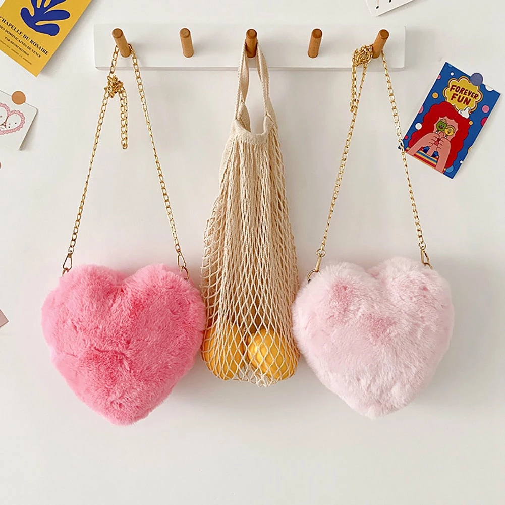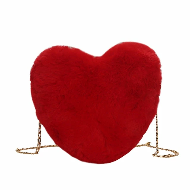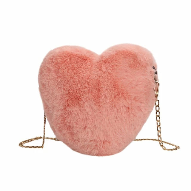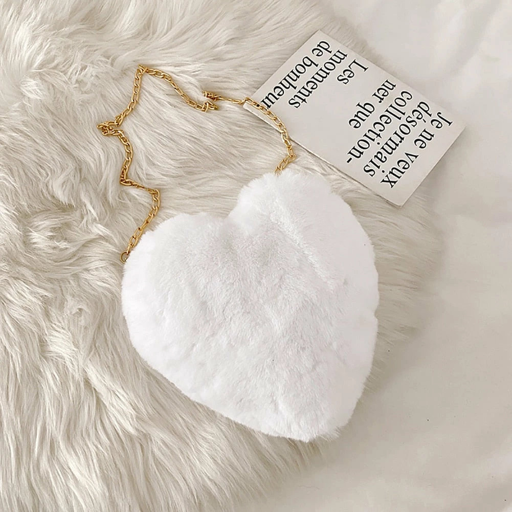 Fluffy and fuzzy heart shaped gold chain crossbody bag