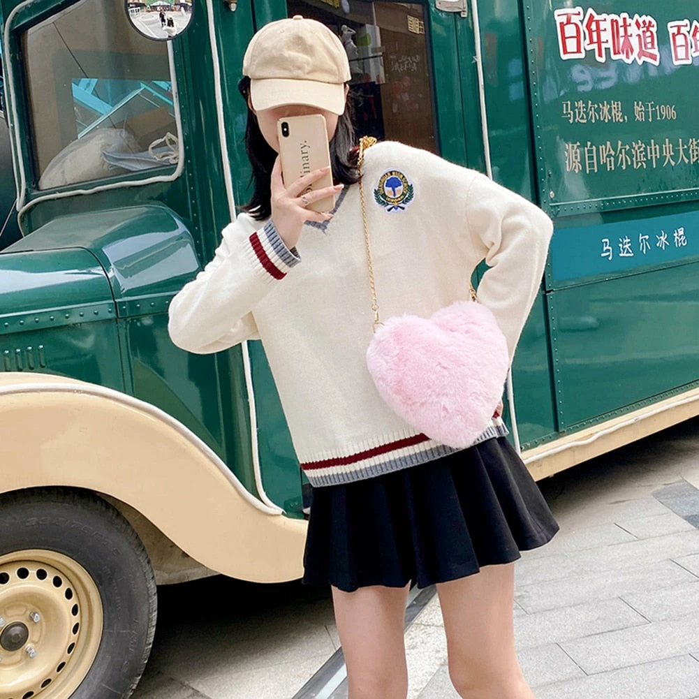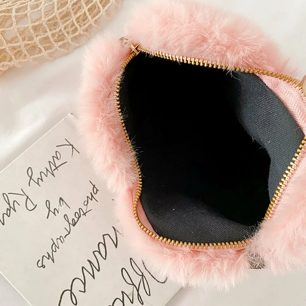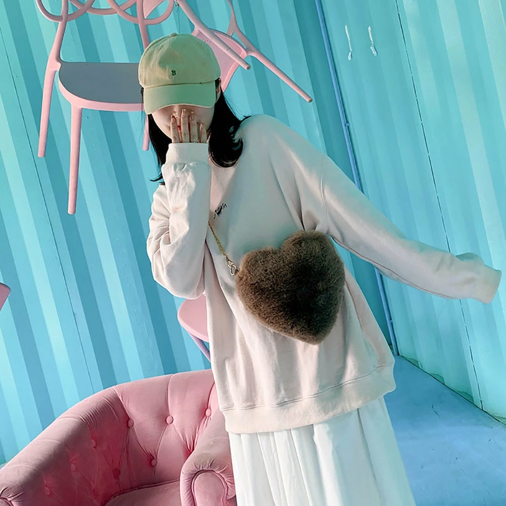 Fluffy and fuzzy heart shaped gold chain crossbody bag