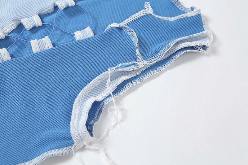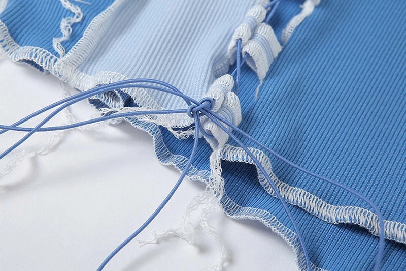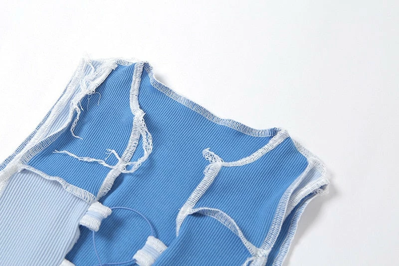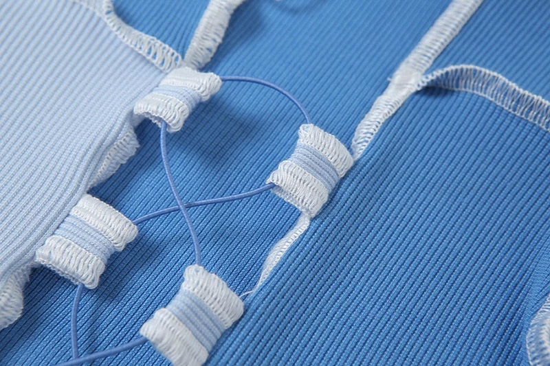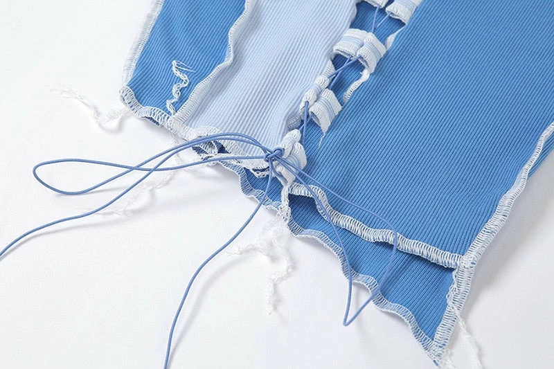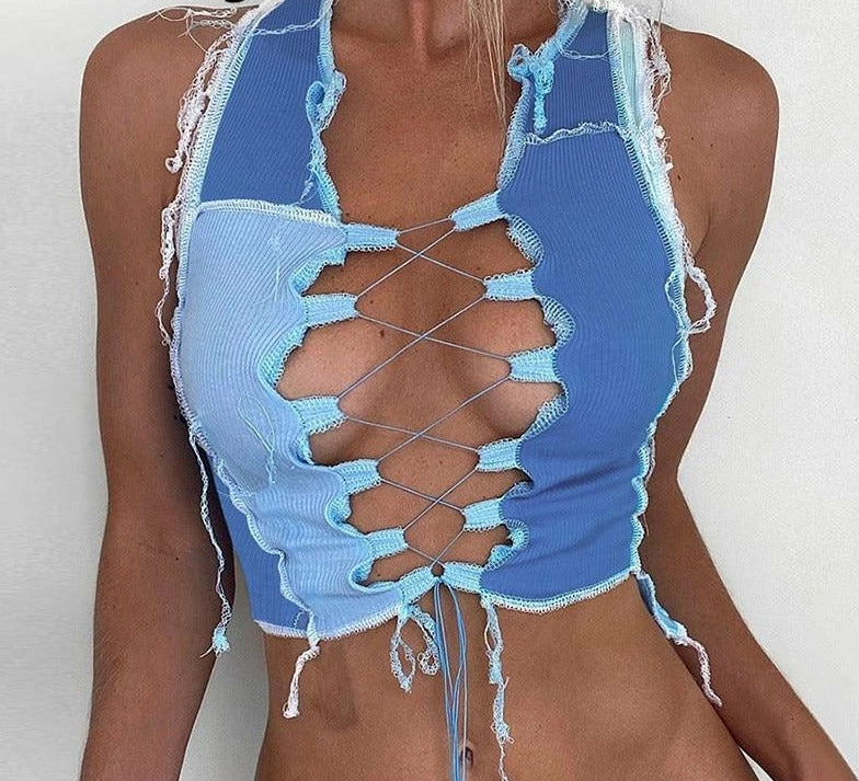 Tank top with an adjustable lace up front, patchwork design, and a cropped fit. Please size up!
