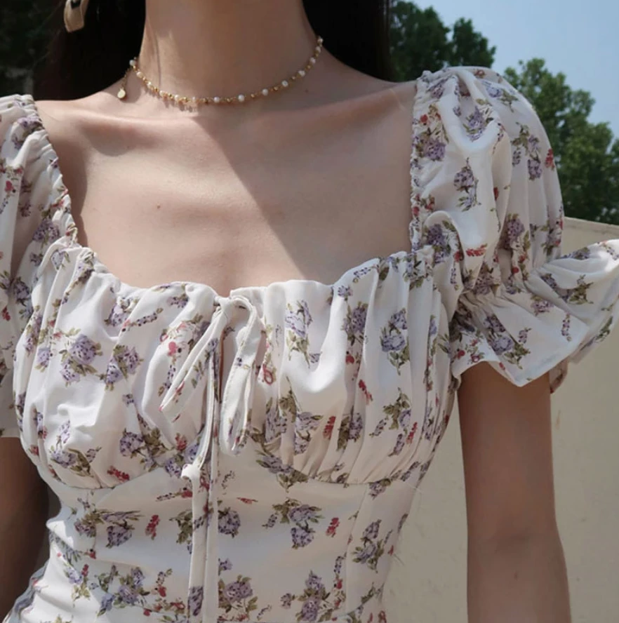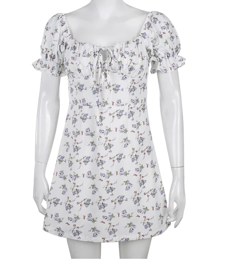 Mini sundress with puff sleeve sundress, and a dainty cottage-core floral print