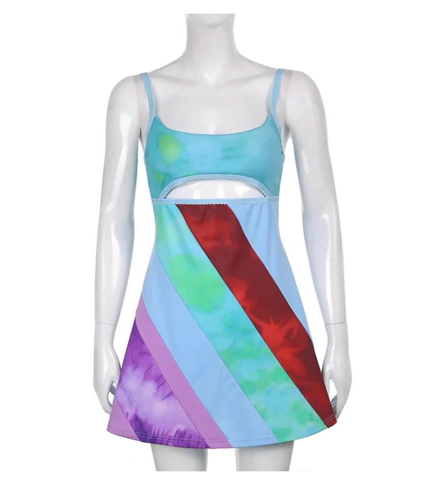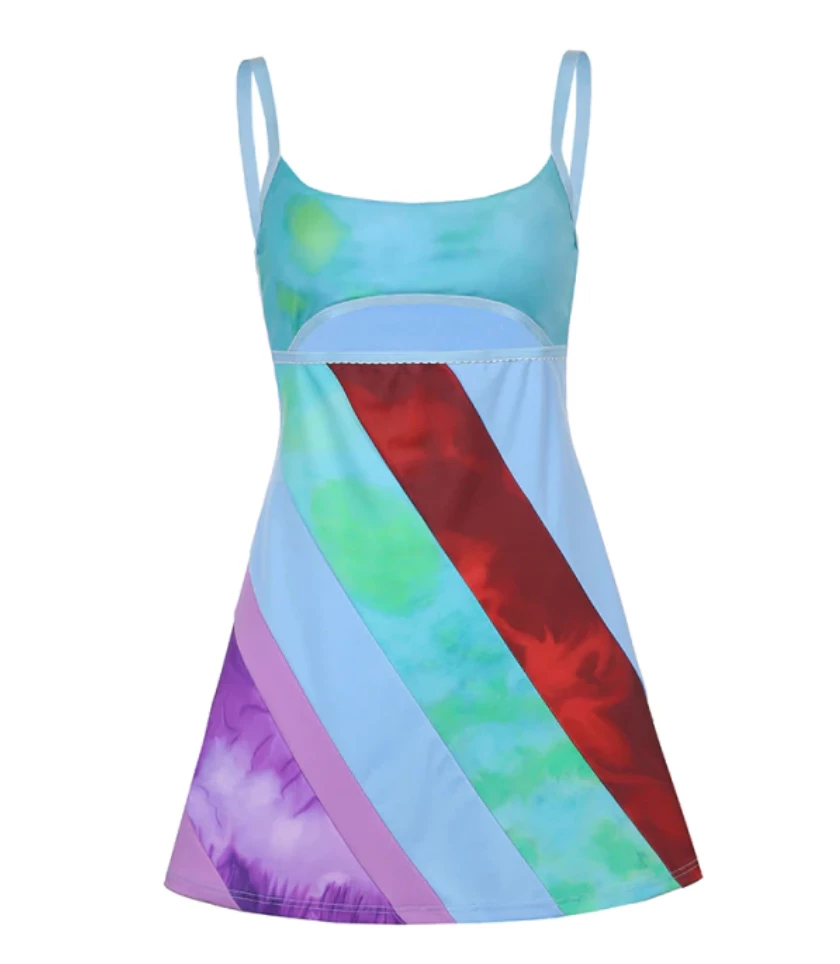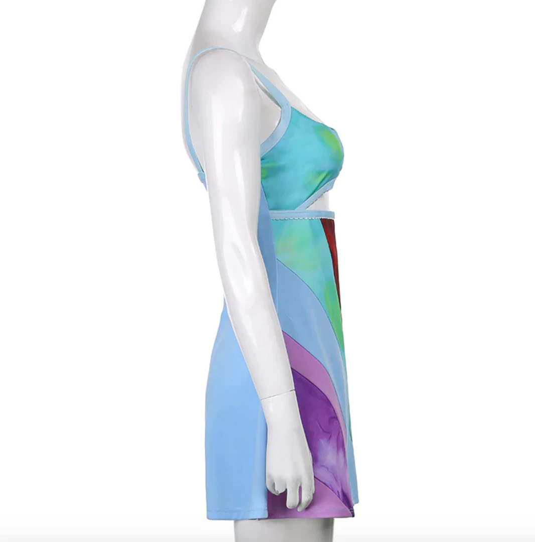 Mini dress with a y2k swirl design. 13 going on 30 vibes.