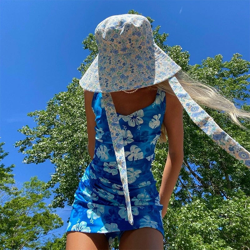 Mini dress with hawaiian floral pattern