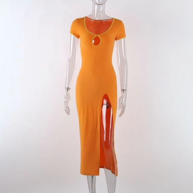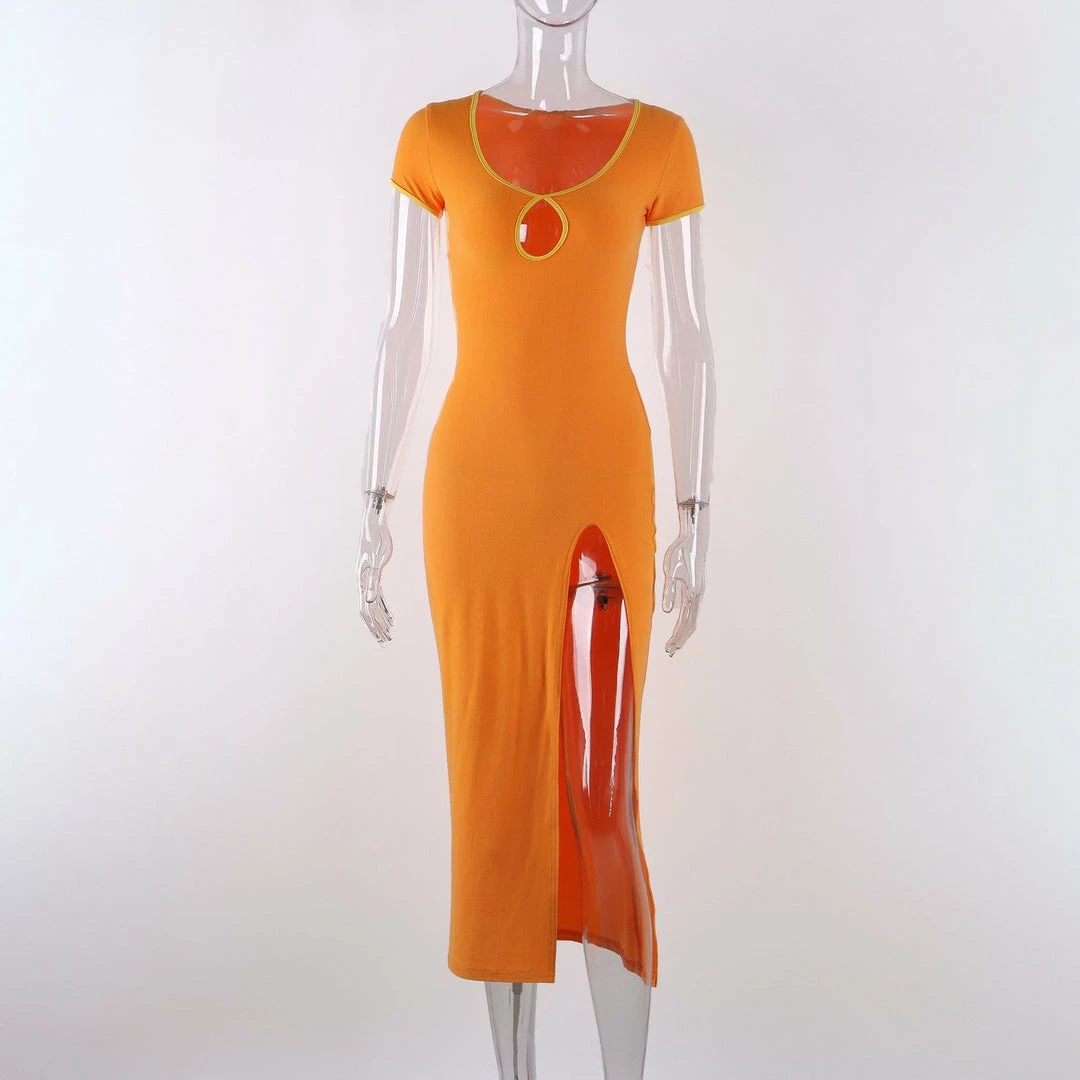 Long midi sundress with a modest leg slit.