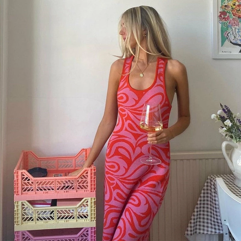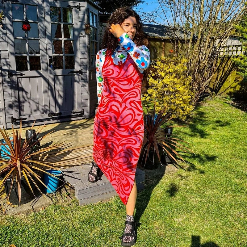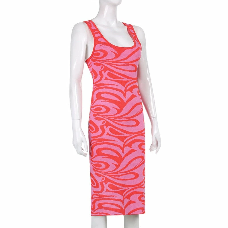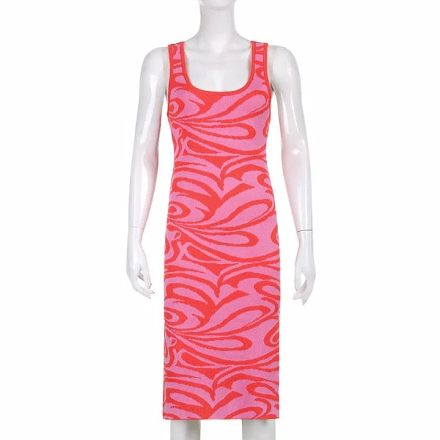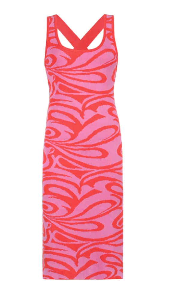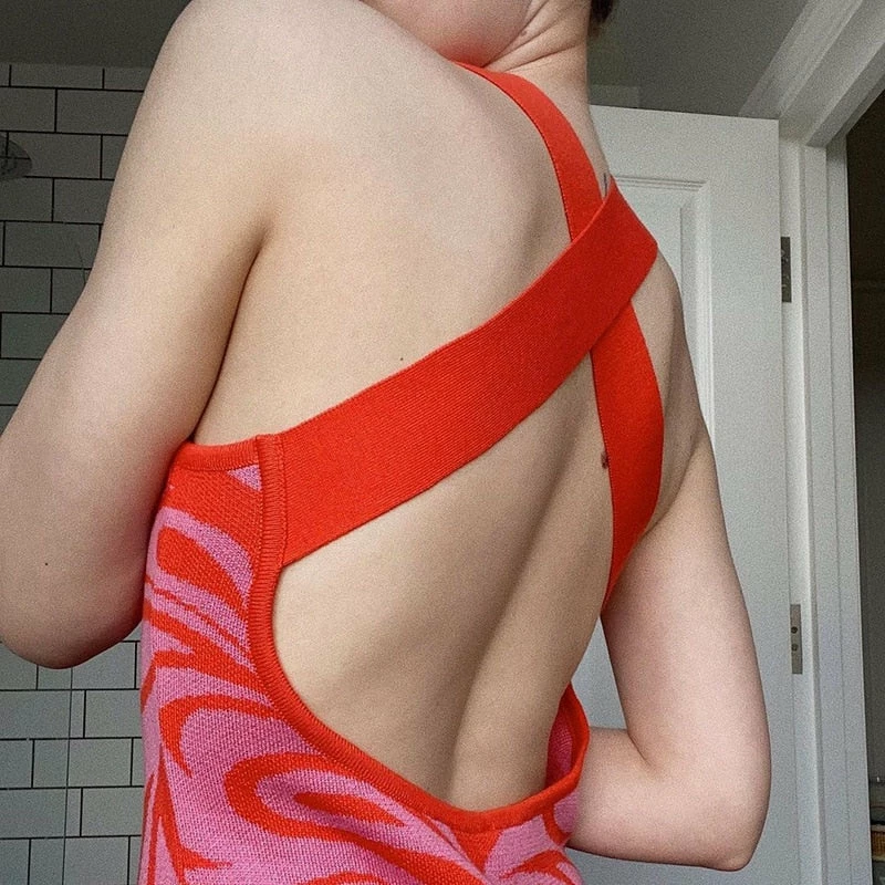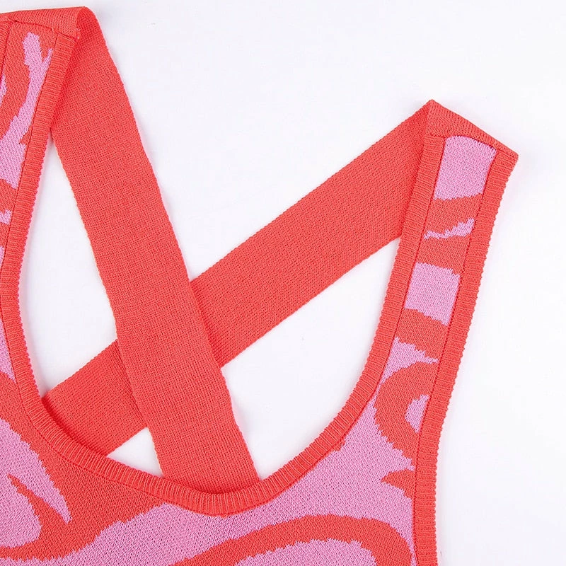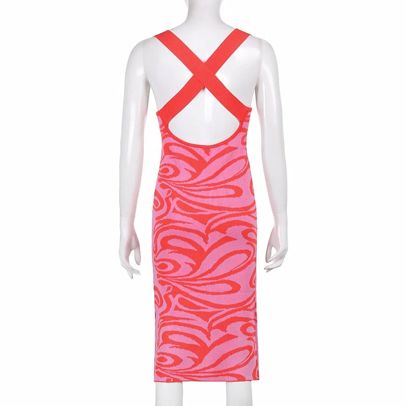 Long dress with a y2k swirl design with an criss cross strap design on the back.