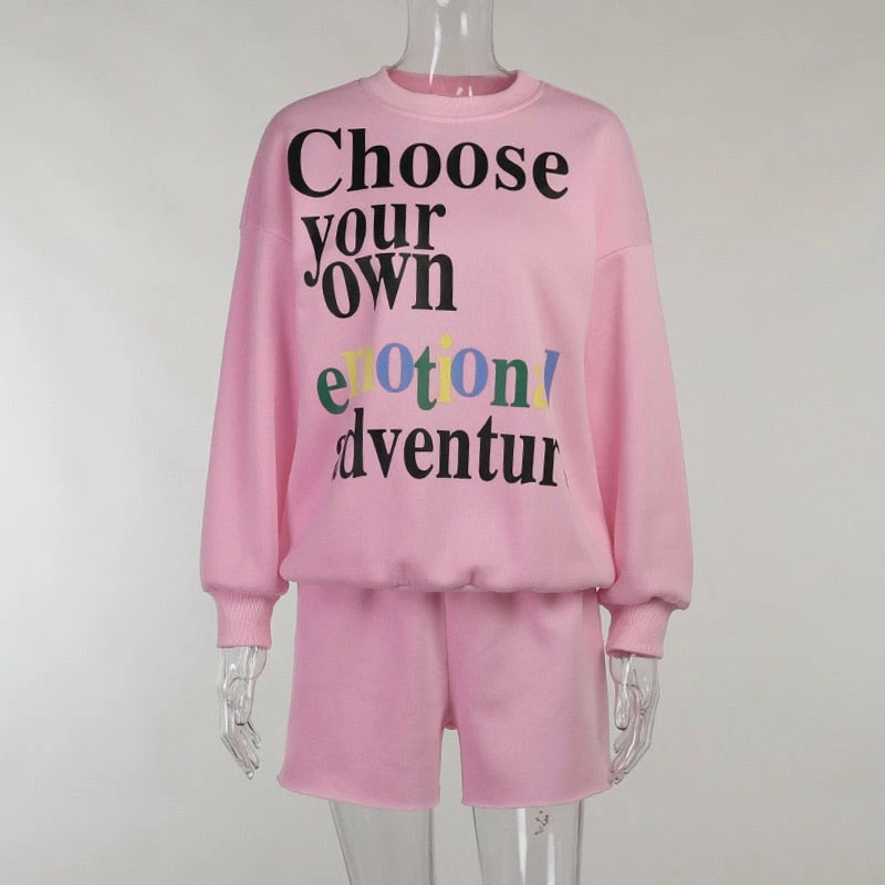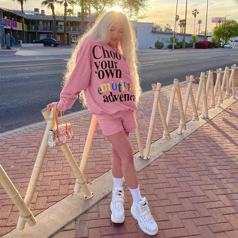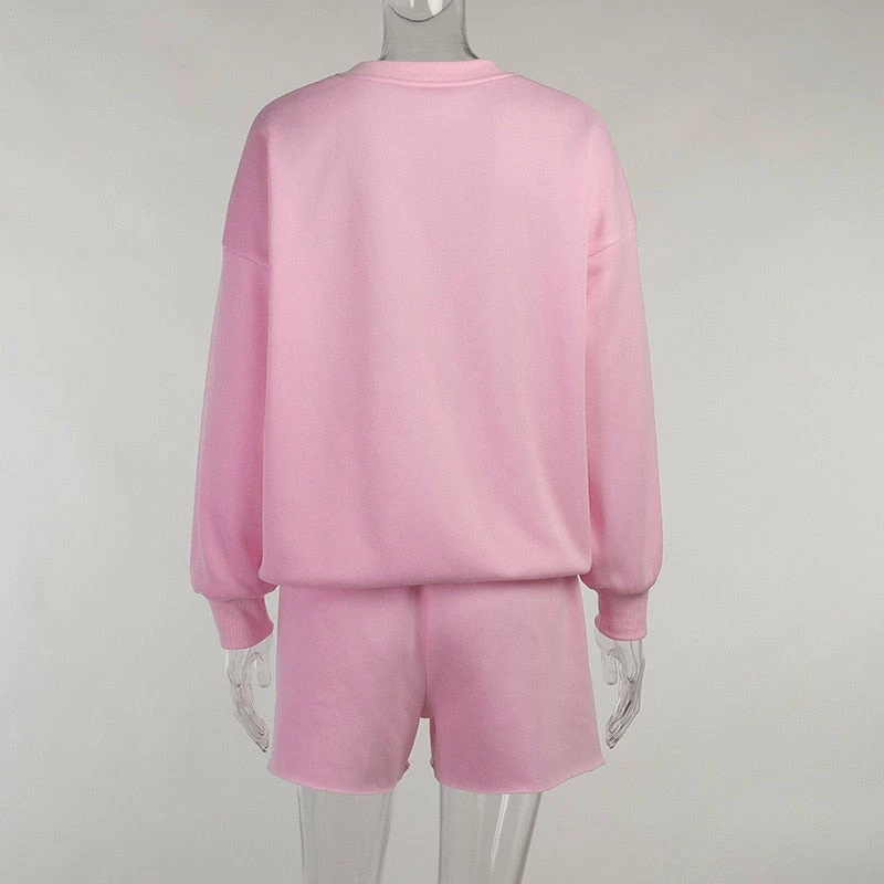 The Emotion lounge set includes the shorts, and sweatshirt