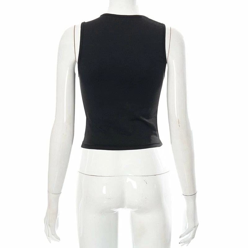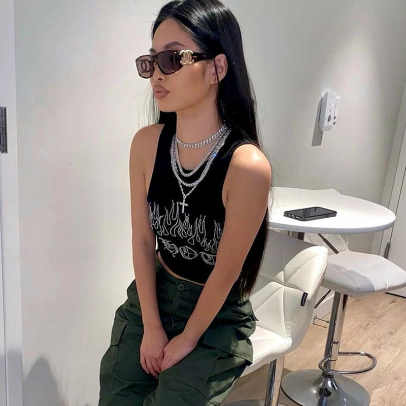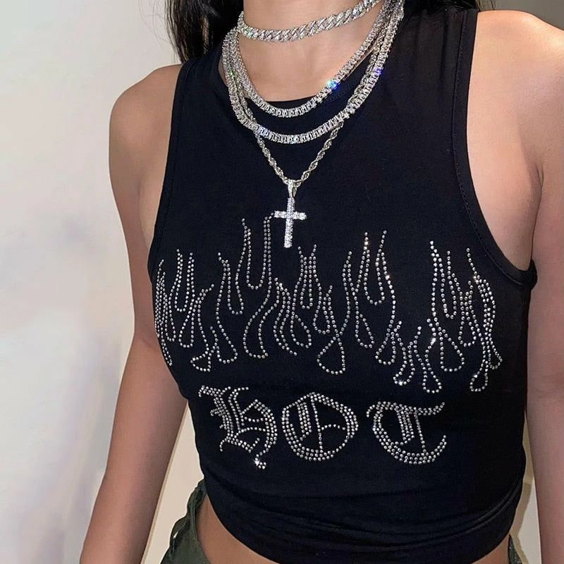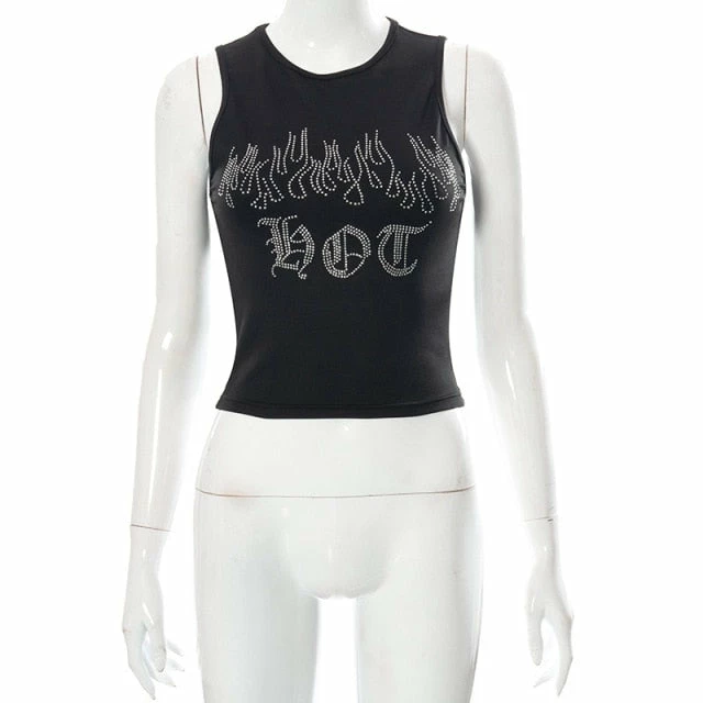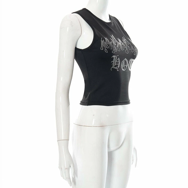 Rhinestone bedazzled ” H O E ” black tank top slightly cropped