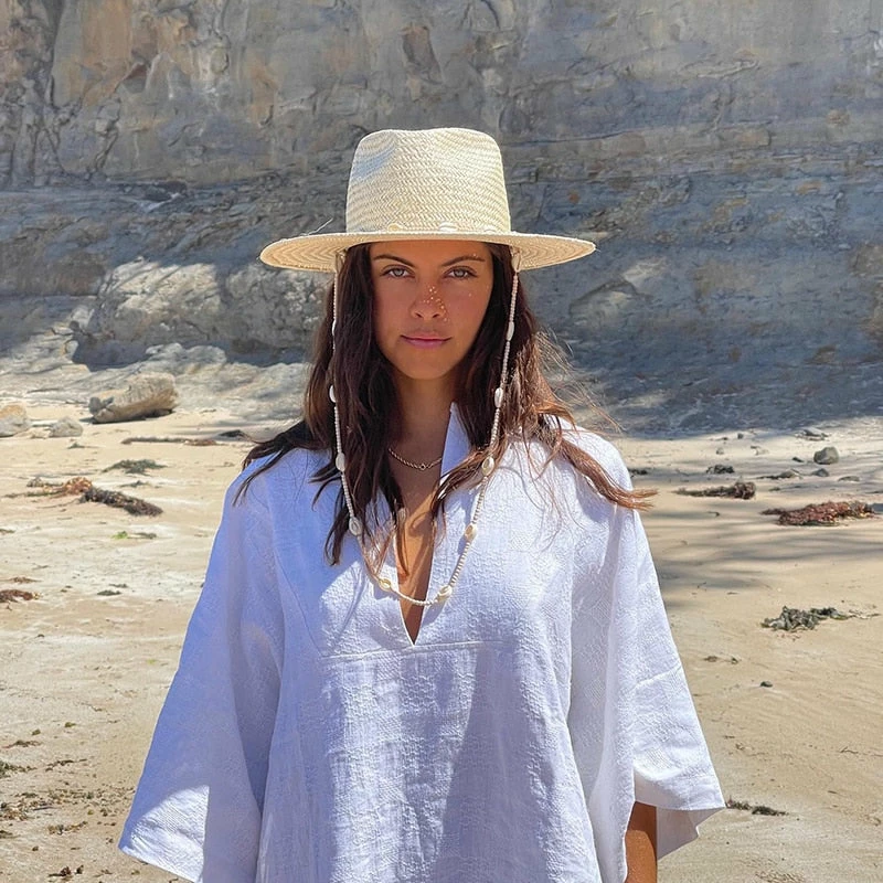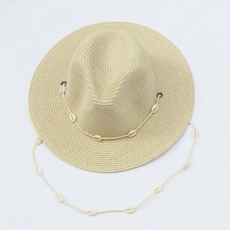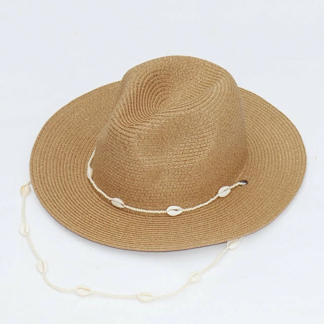 perfect summer beach hat with shell strap