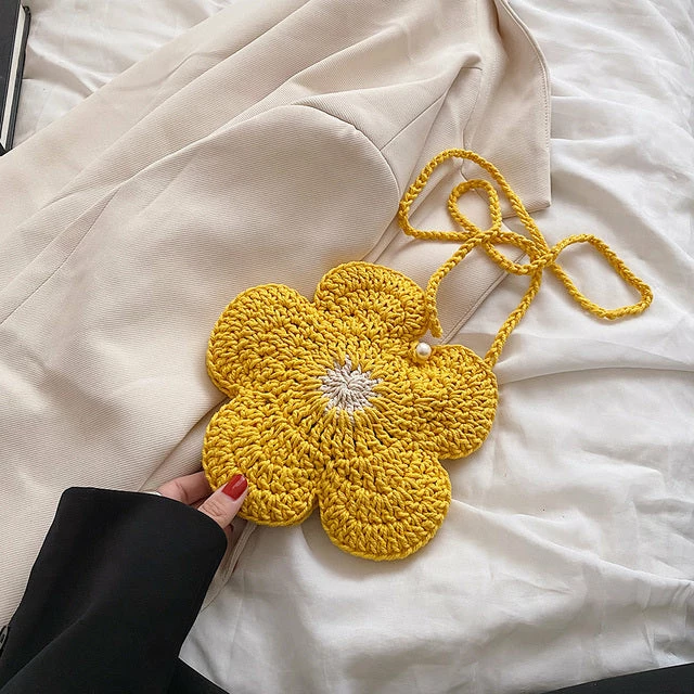 casual handmade flower purse with a crossbody strap