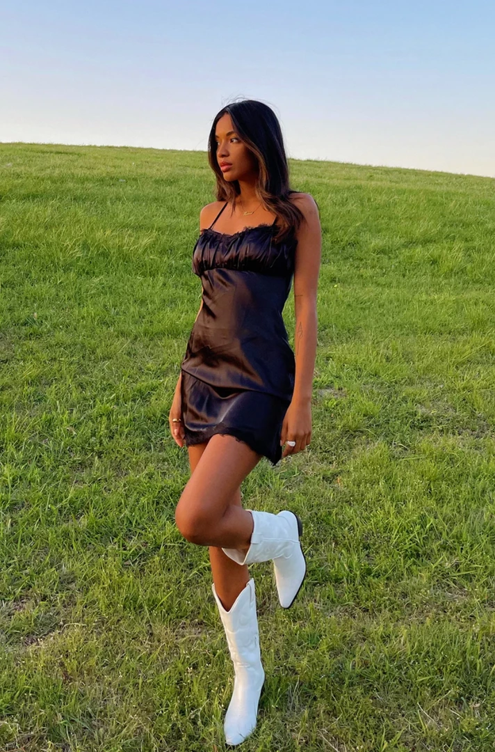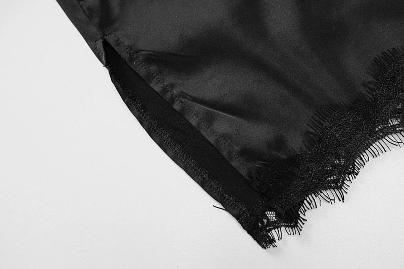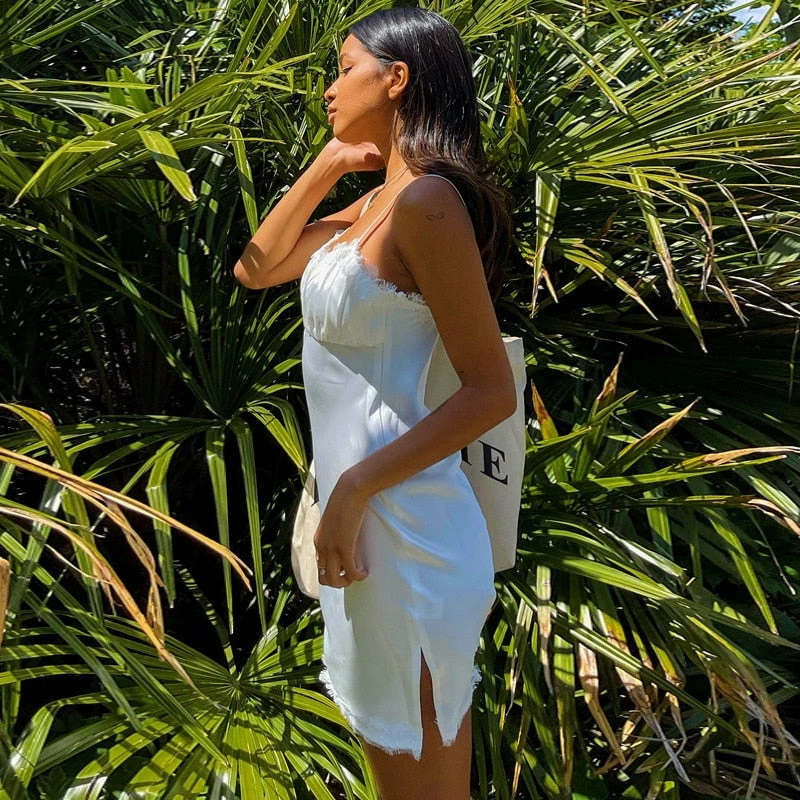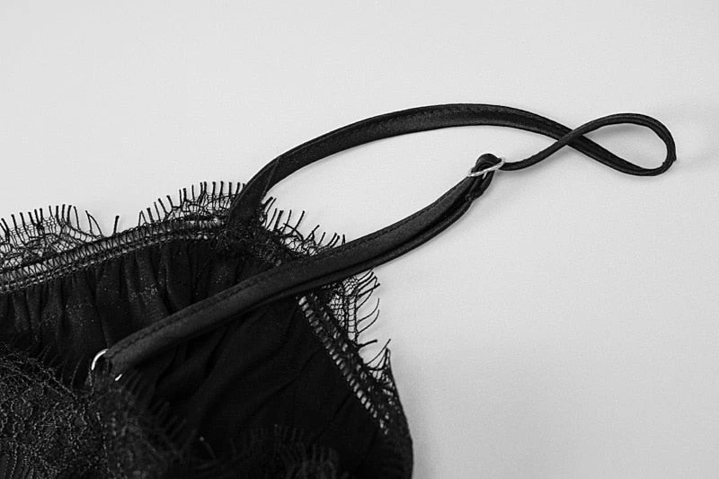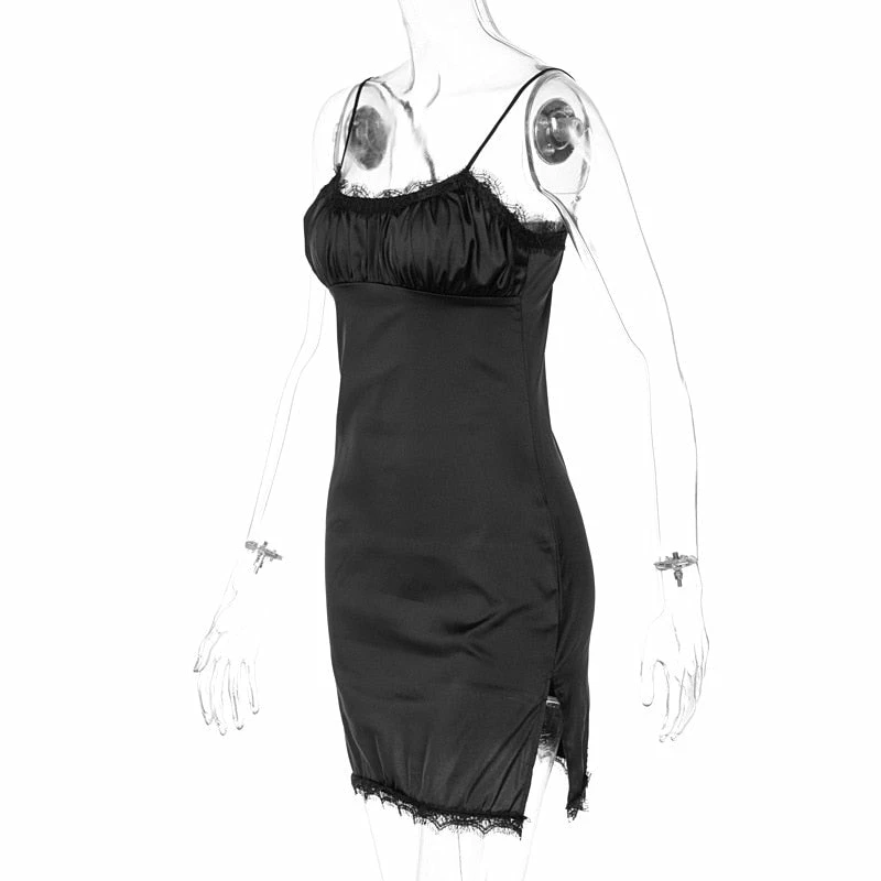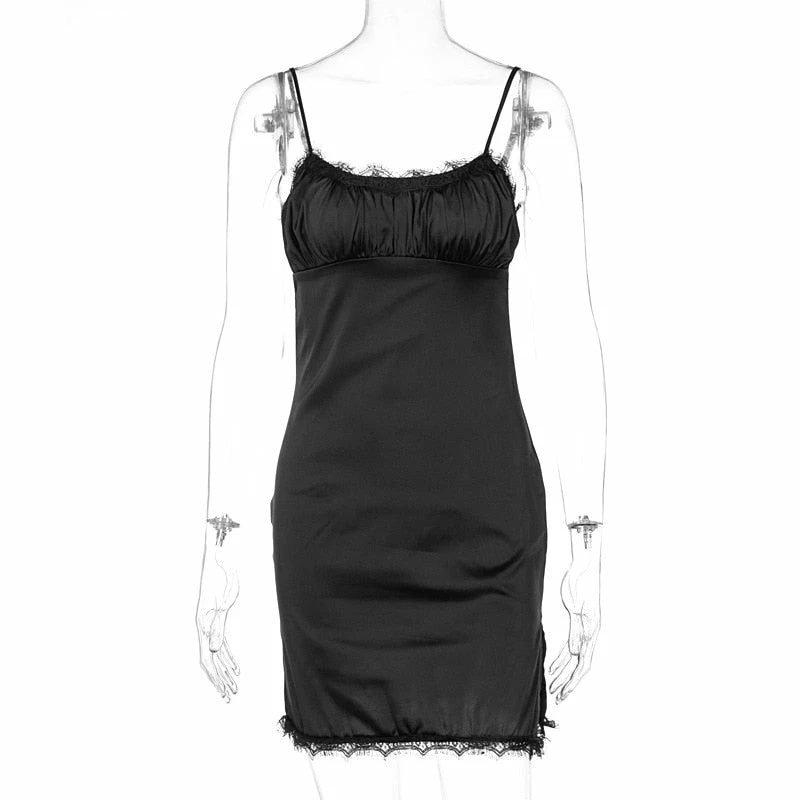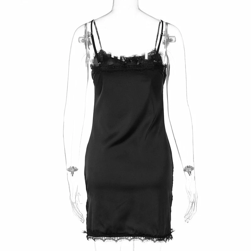 Mini dress with adjustable spaghetti straps, and lace detailing