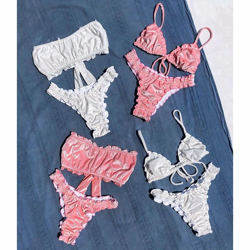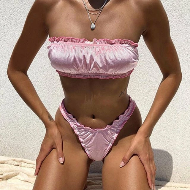 bikini includes the top & bottoms. Mid rise fit. Cheeky. Strapless.