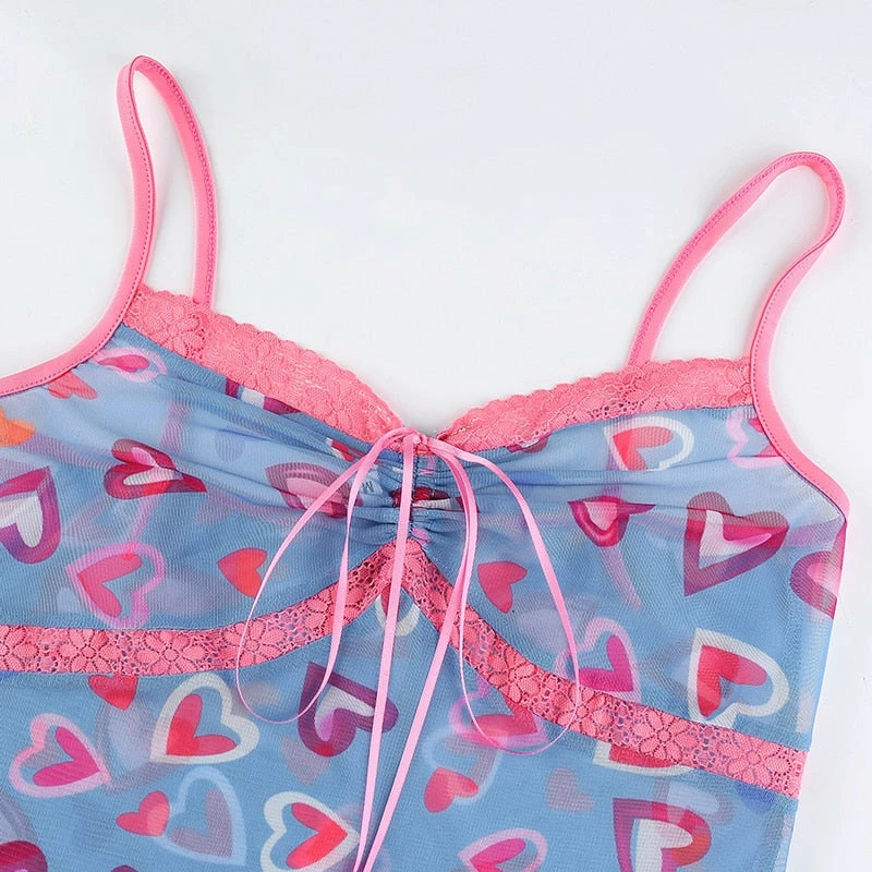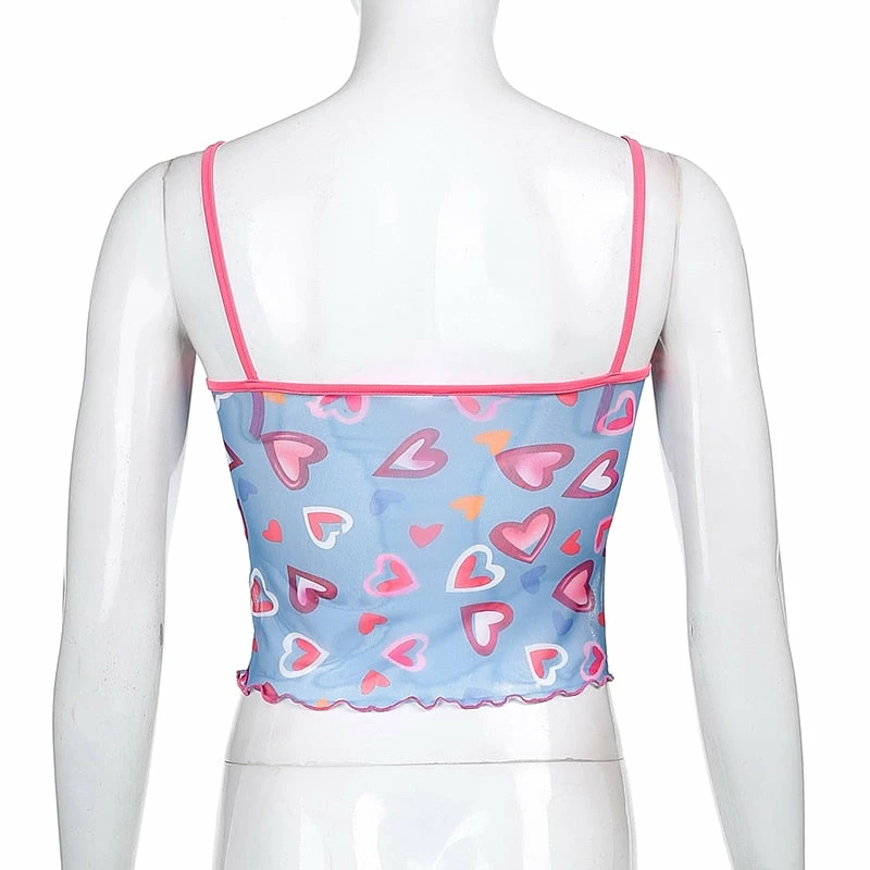 y2k mesh cropped tank with spaghetti straps. Model wears a size medium.