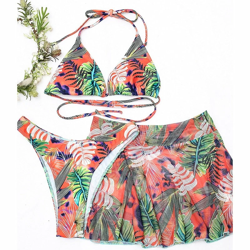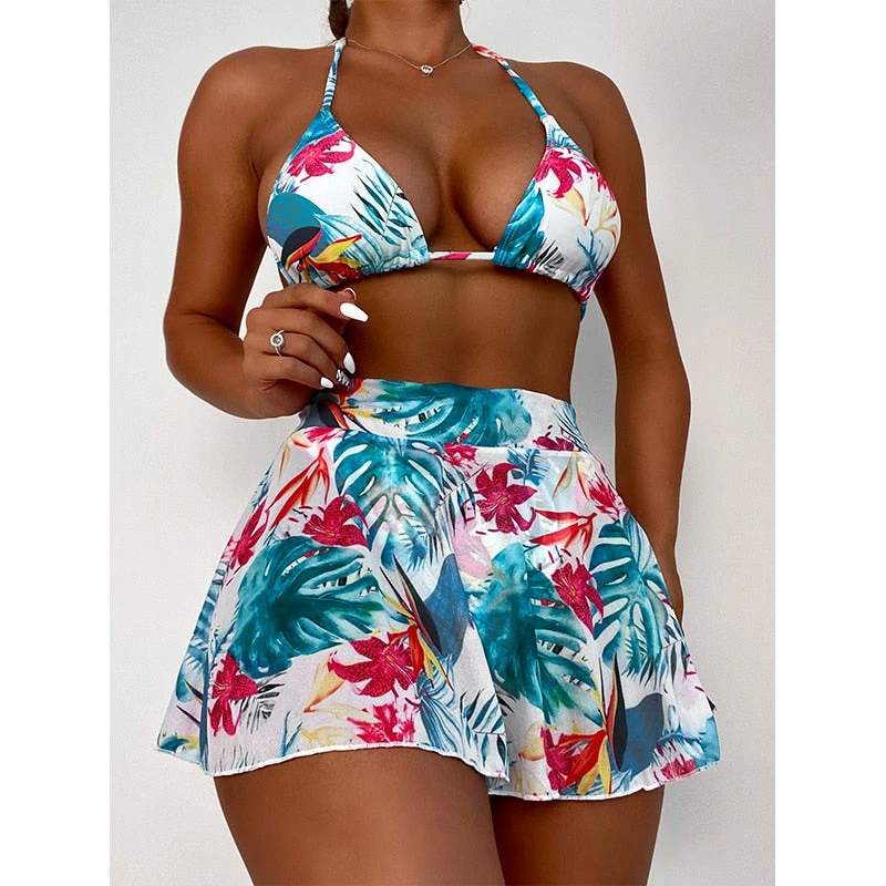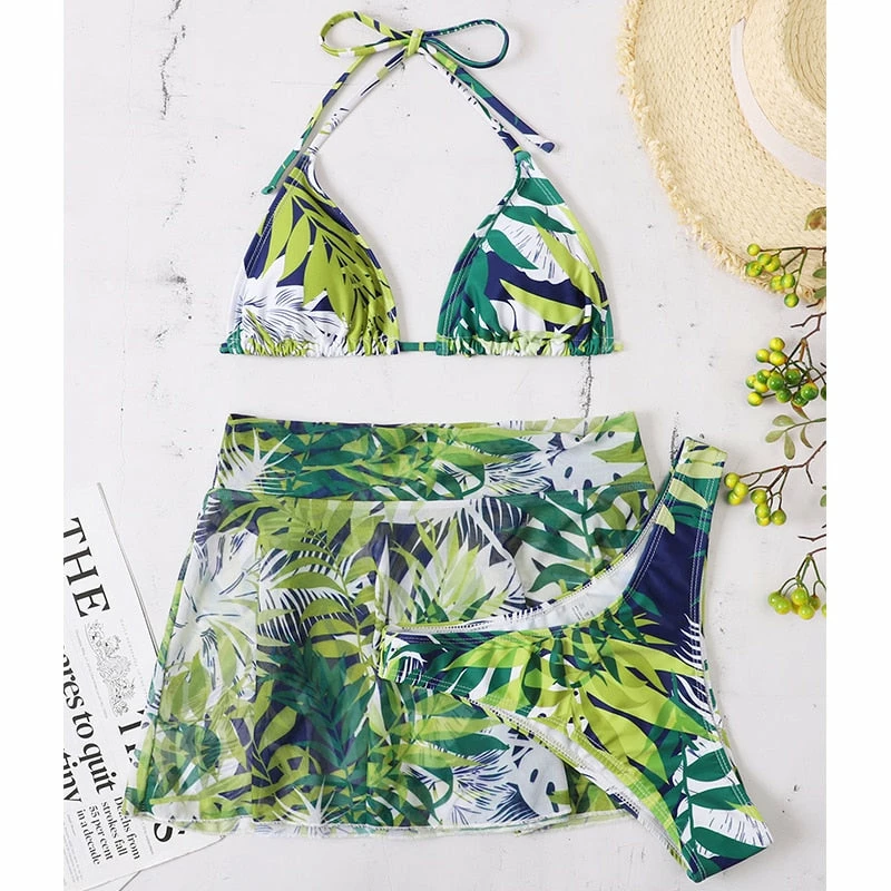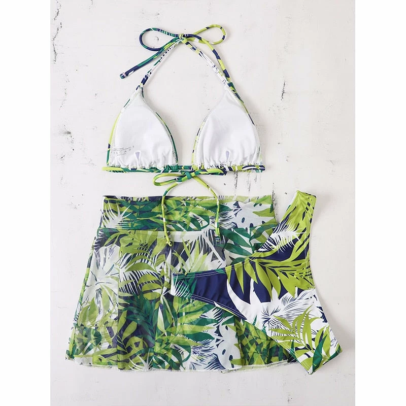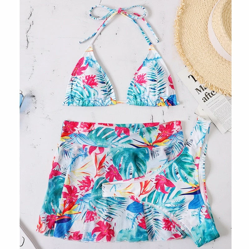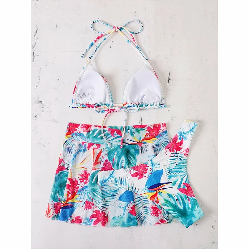 Includes the bikini cover up skirt!