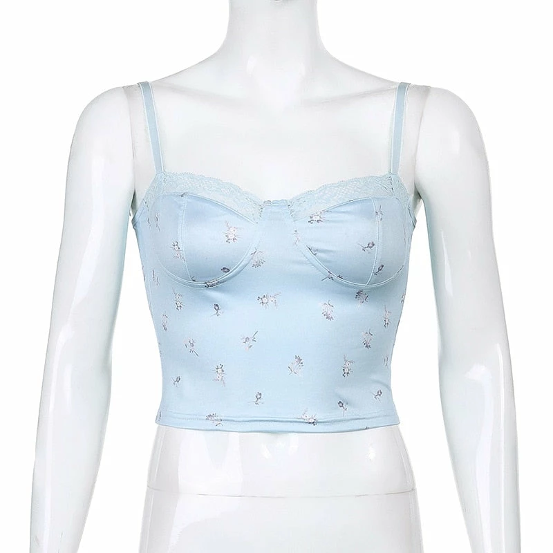 Satin y2k inspired cropped tank with dainty floral design, and spaghetti straps