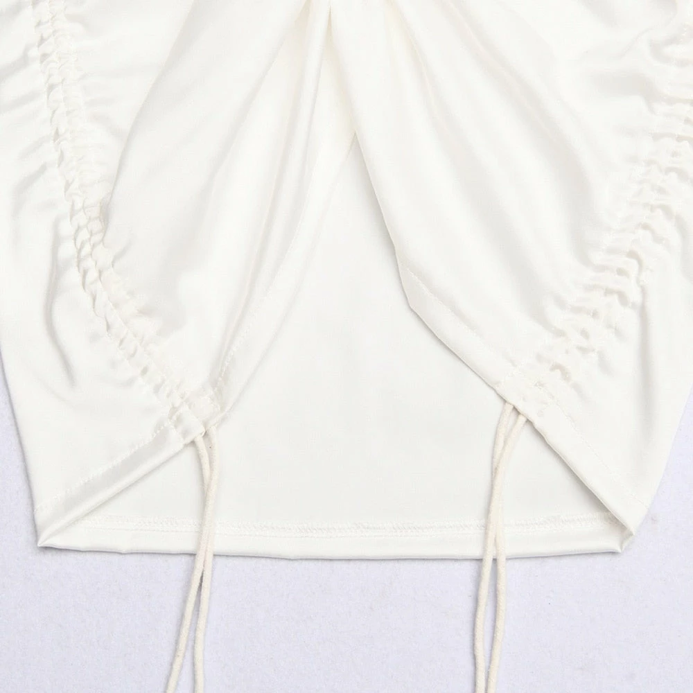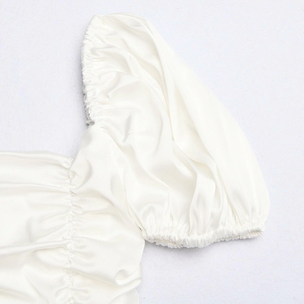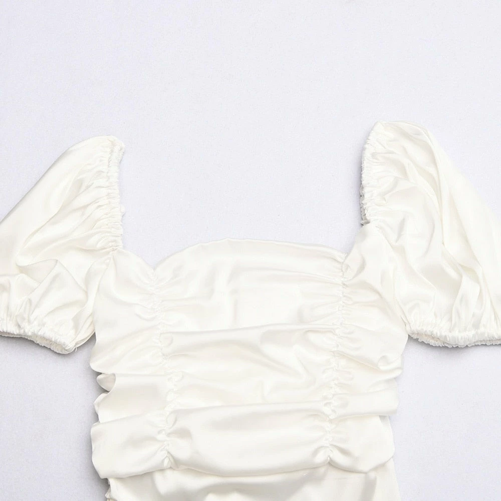 Mini sundress with square neck with scrunchie sleeves, and fitted bodice.
