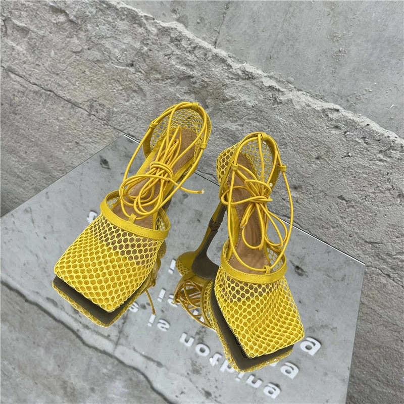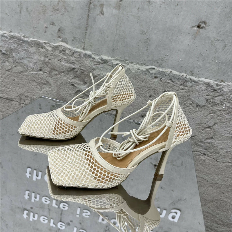 You are THAT girl when wearing these mesh square toe cross tied heels