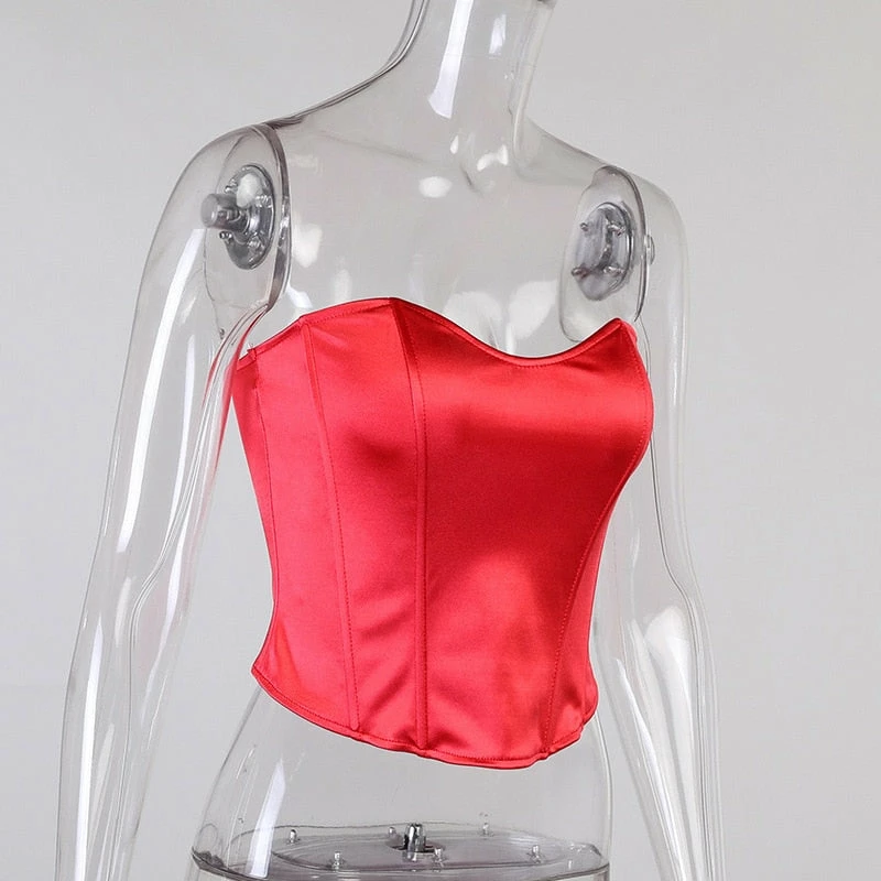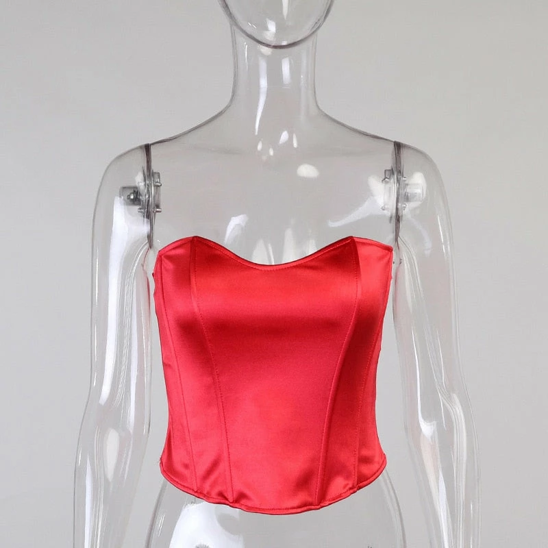 Strapless modern cut corset with a satin finish