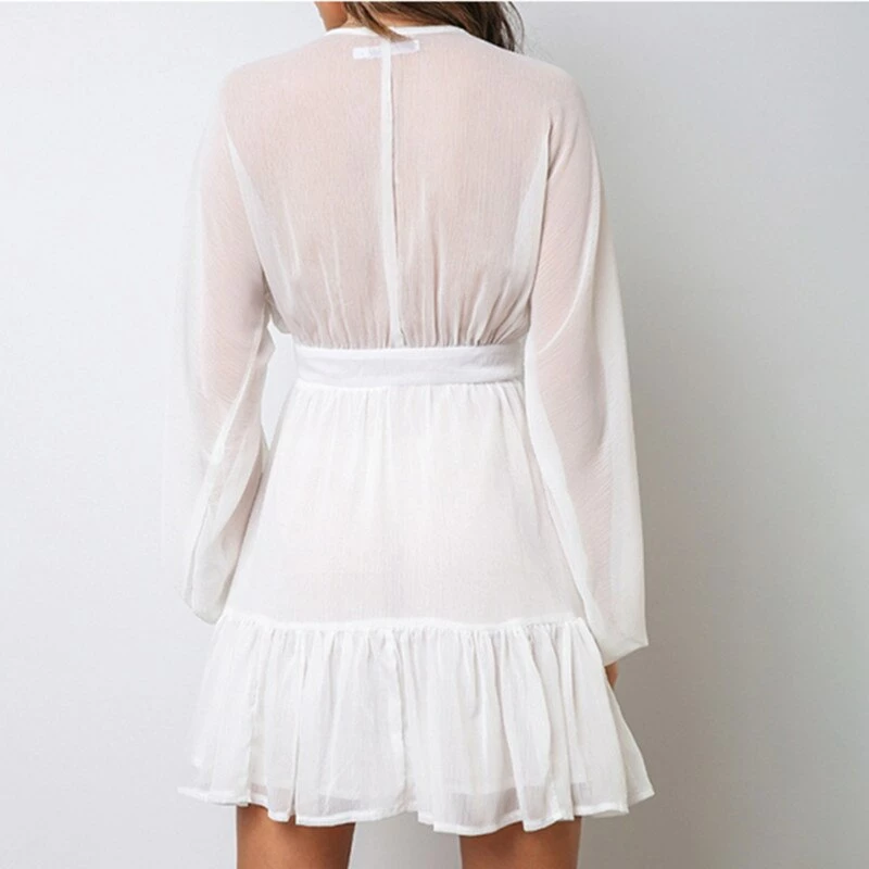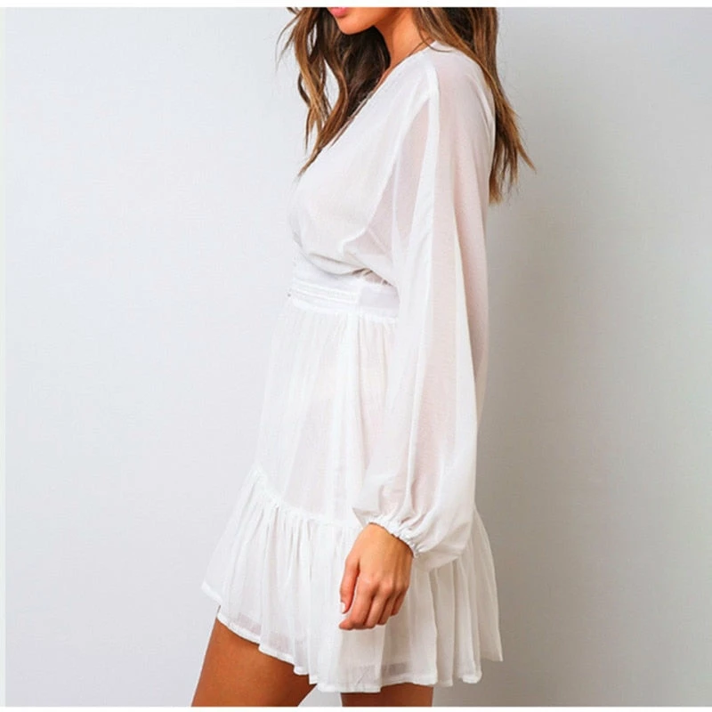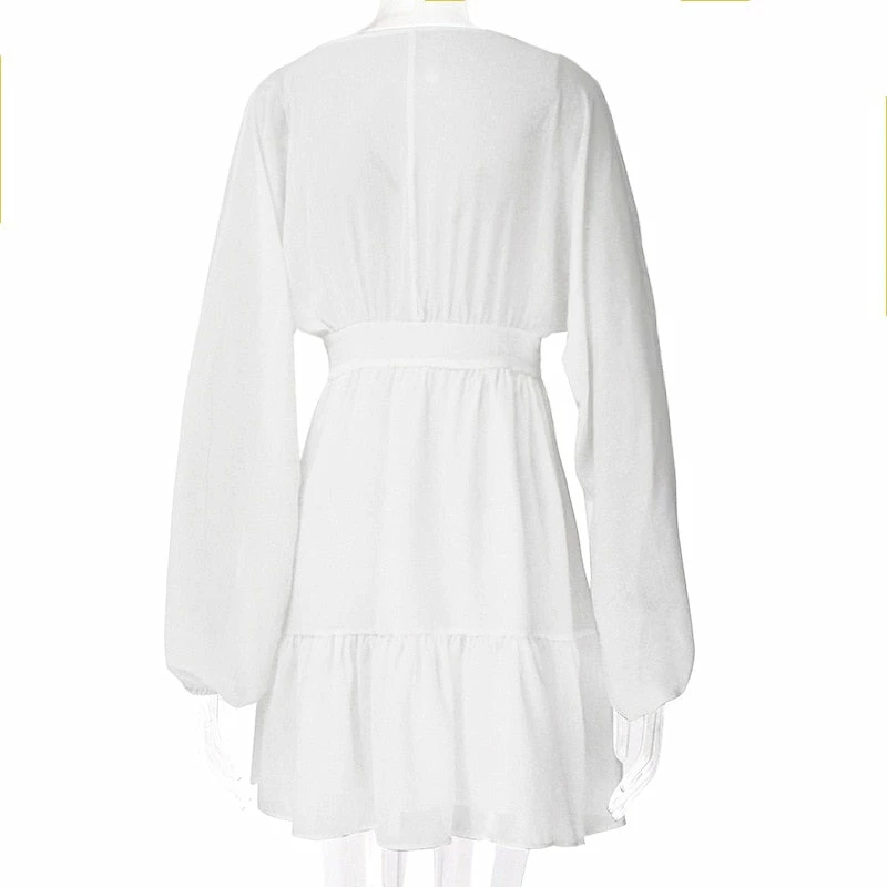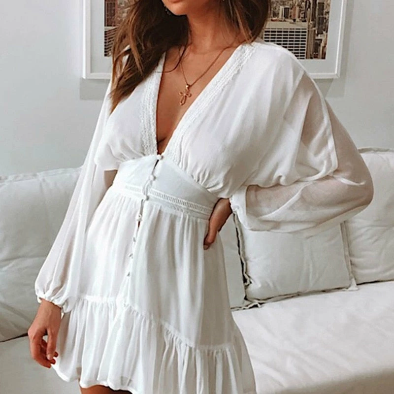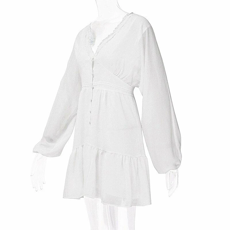 Long puff sleeve sundress with ruffles, and button up front.