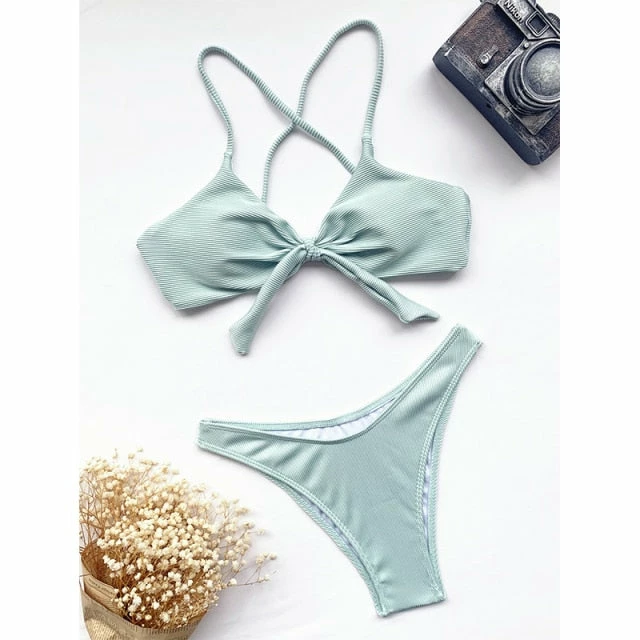 bikini includes the top & bottoms. Mid rise fit. Cheeky