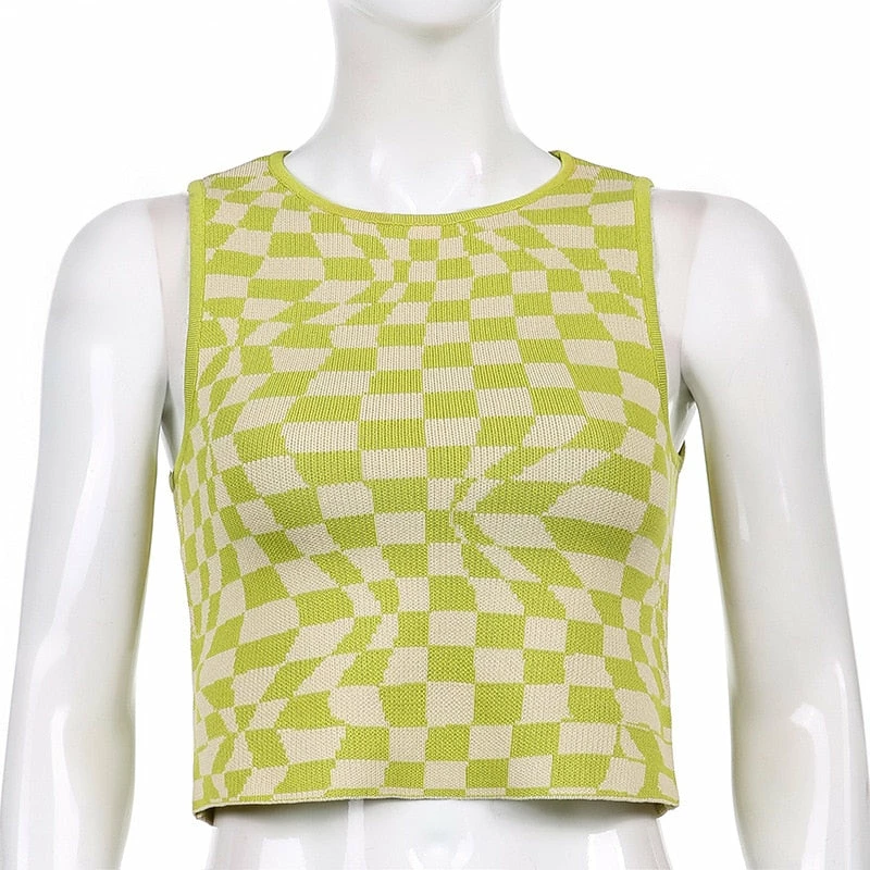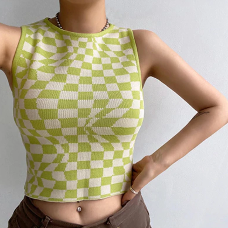 y2k inspired / slightly cropped checkerboard pattern tank top