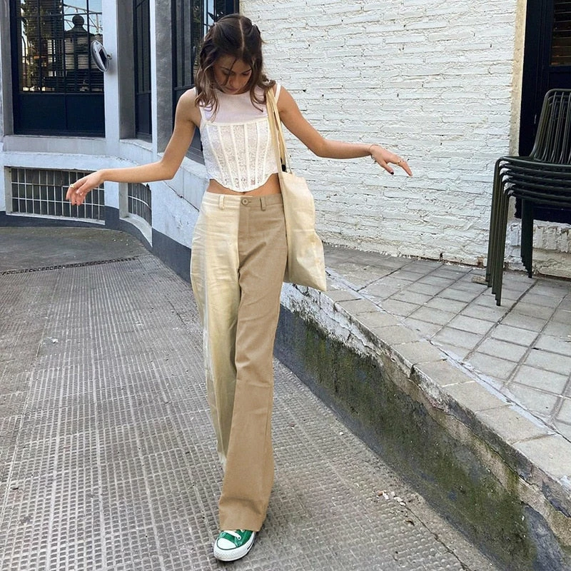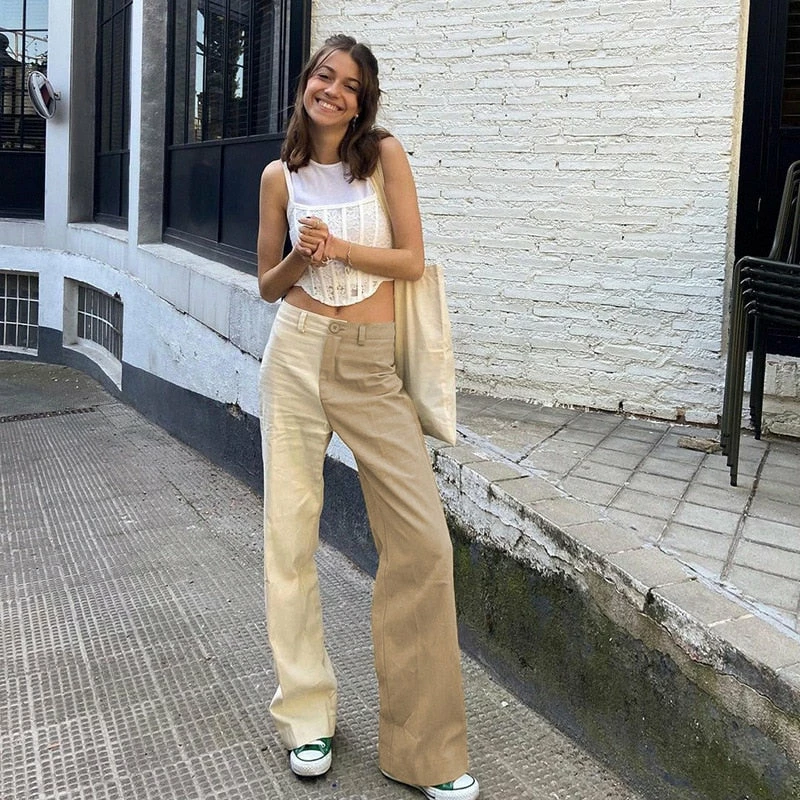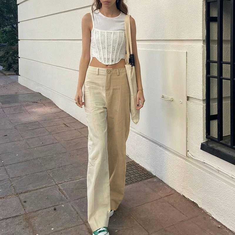 high waisted fit, straight leg two toned pants
