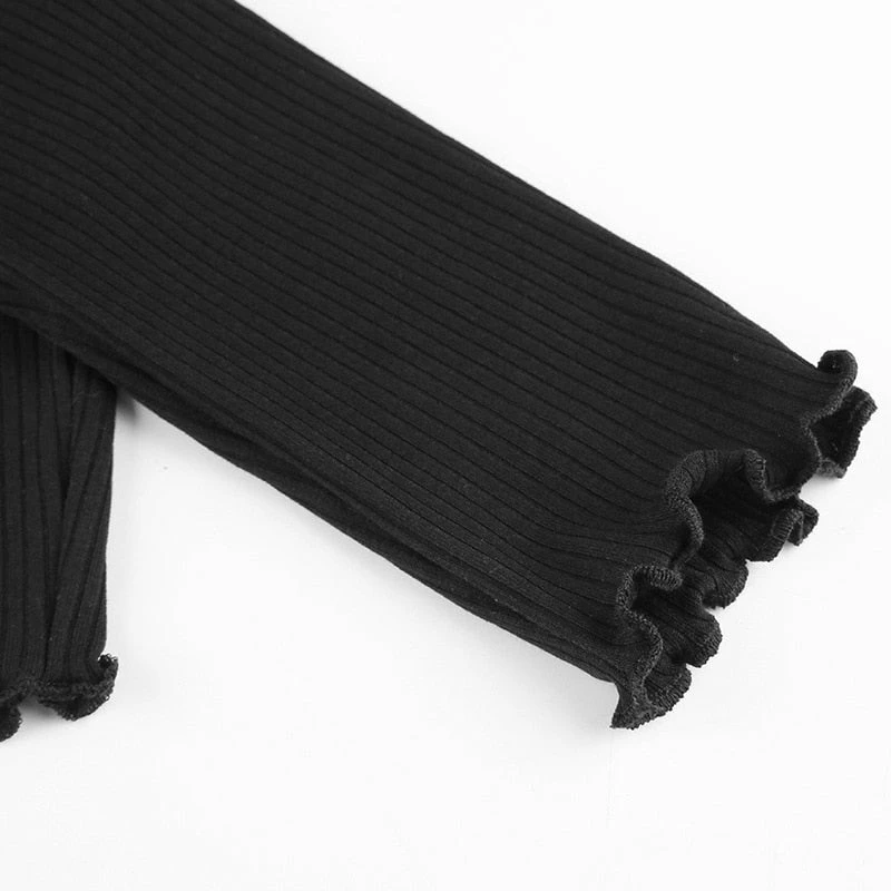Basic black long sleeve with lace trimmed details, and a cropped fit
